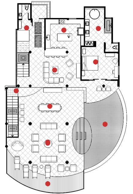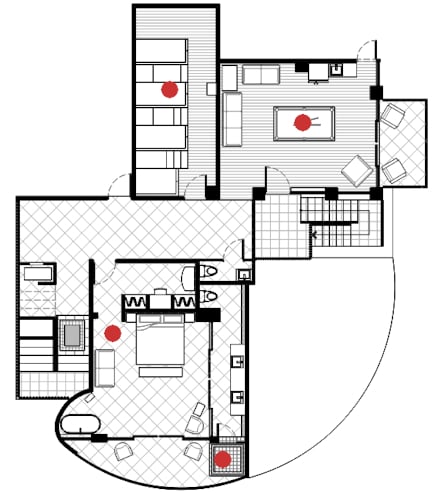 User Instructions: Each arrow or pinpoint will guide you accordingly to each space that you want o explore. Tap or click on each one and slide to the direction which you want to turn to. When looking down, press our logo to return to the main view of the house.