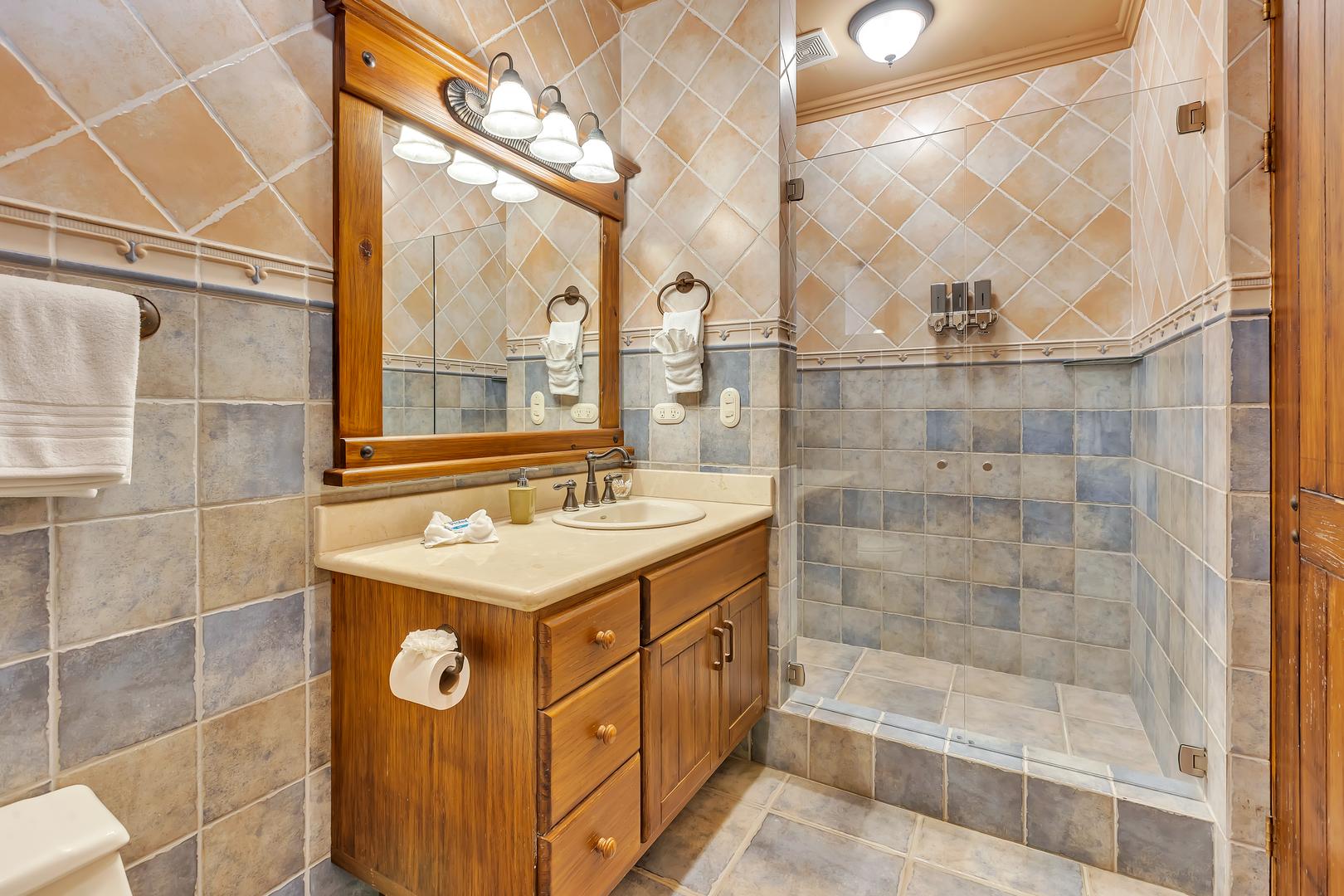 Enjoy a private pool with a natural waterfall, just steps from a quiet sandy beach. Relax in the hot tub, fire up the built-in BBQ, or sip cocktails at the poolside bar as the sun sets. There’s also a modern entertainment room with a large TV and surround sound for family movie nights.
